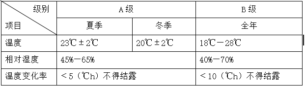 表二:停機時電子數據中心機房的溫、濕度要求